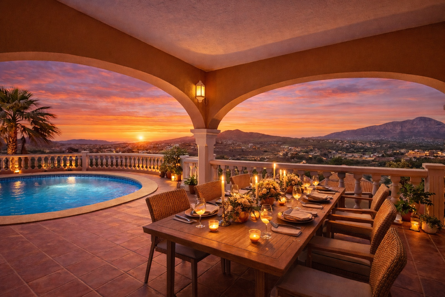 Ontsnap aan de drukte en geniet van rust, zon en uitzicht in deze stijlvolle villa in Benitachell (Alicante). De woning ligt in de rustige wijk Los Romeros en biedt een adembenemend panorama over de bergen, de vallei en de Middellandse Zee – met elke avond een onvergetelijke zonsondergang vanaf het terras of het zwembad.
